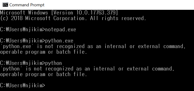 Let’s see the example below. It is possible to execute the notepad program from cmd since the path of ‘notepad.exe’ is set already. However, we didn’t yet set the path of the python yet.Change the path to where the python is installed and run python.exe.